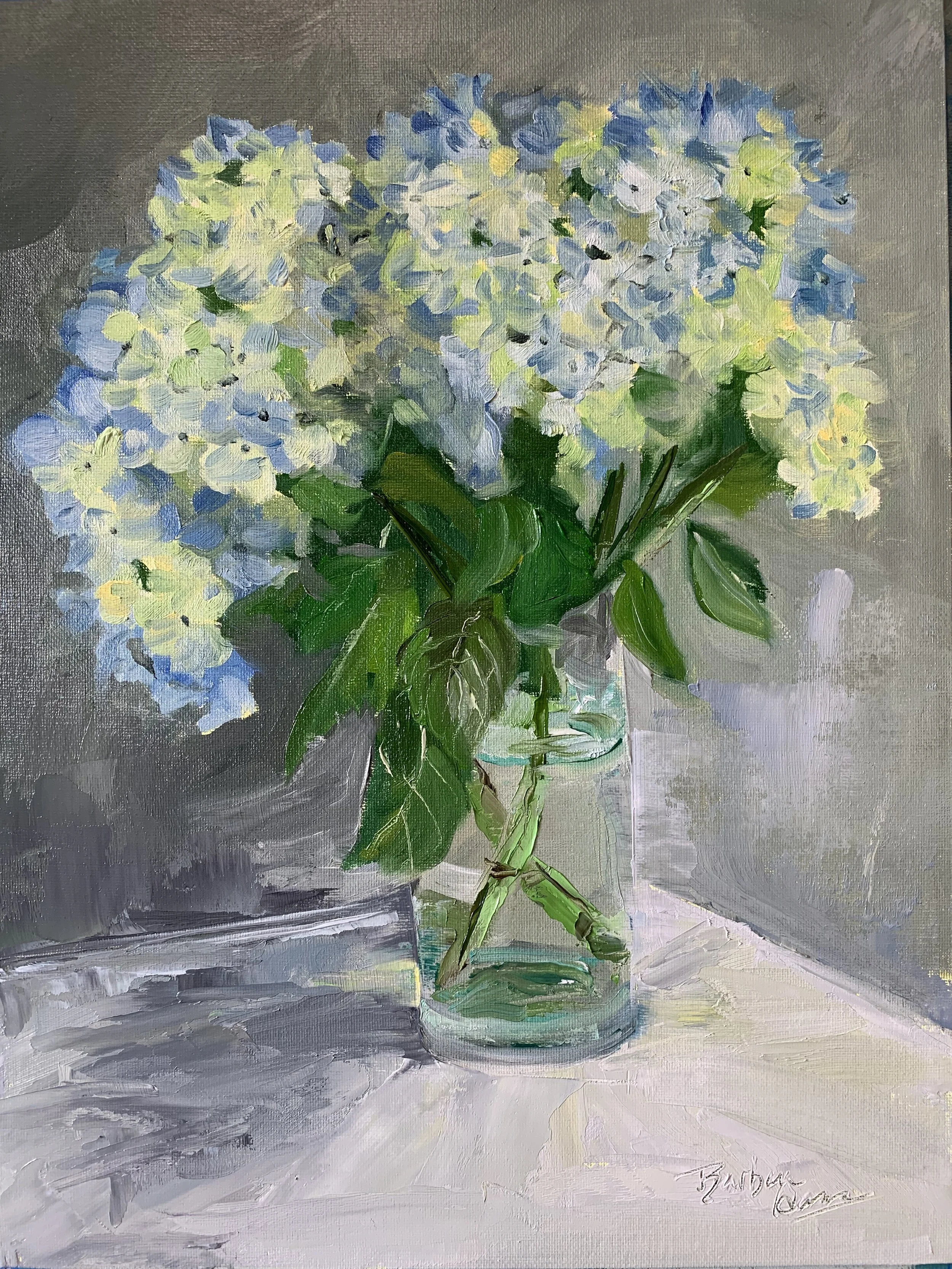 The exploration in painting hydrangea in oil paints. A new size for the flower collection is a 12”x16” panel. If you are interested in more information to can find it on the website