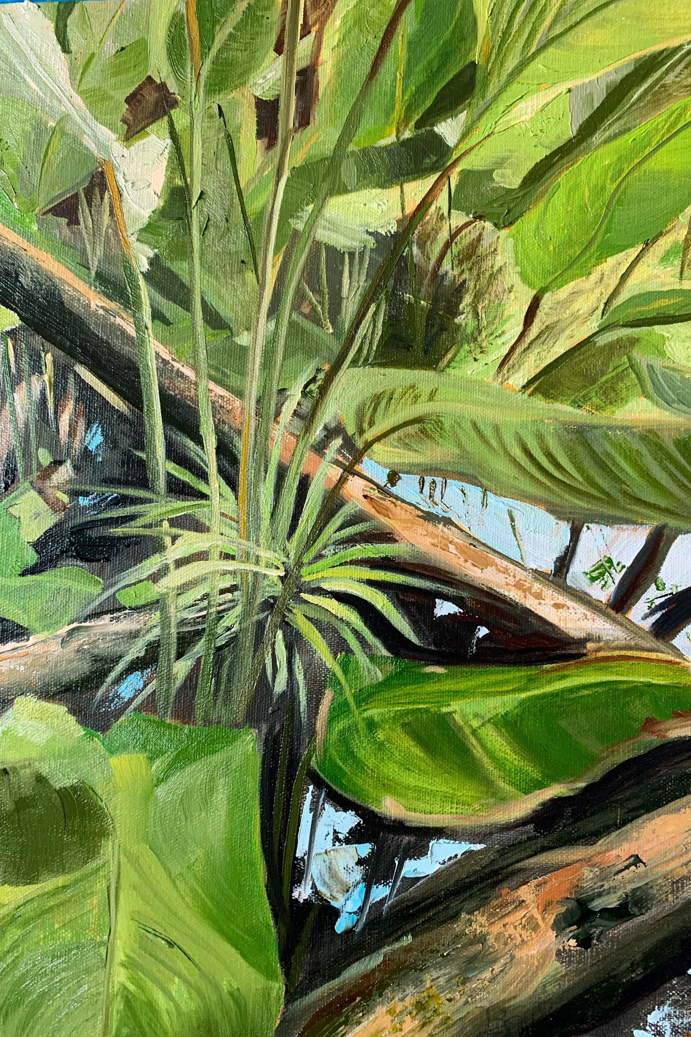 This painting is completed in oil paints on a 9”x12” panel. The variations in green colors with the focus on the bromeliad inspired this painting. The most challenging part of the painting was testing myself to put in enough detail to convey the moment. To much detail and the painting would be confusing. The time and thought it took to complete this painting was well worth the revisit to the Everglades.